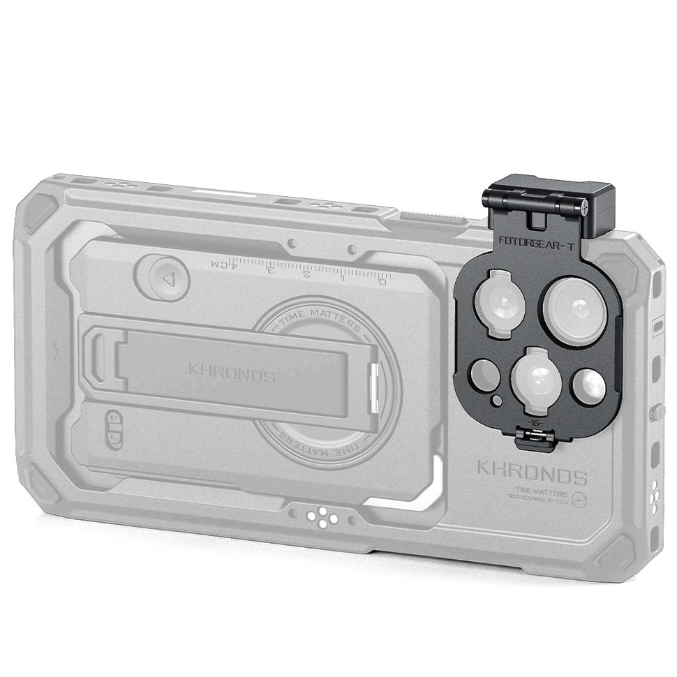 | Адаптер для установки объектива с байонетом T-mount (Fotorgear) на чехол Tilta серии Khronos. Достаточно просто установить его на бортик, а подвижная конструкция позволяет поставить мобильную оптику в любое время, исключая процесс настройки нужного положения линз. Разработан специально для iPhone 16 Pro/16 Pro Max |