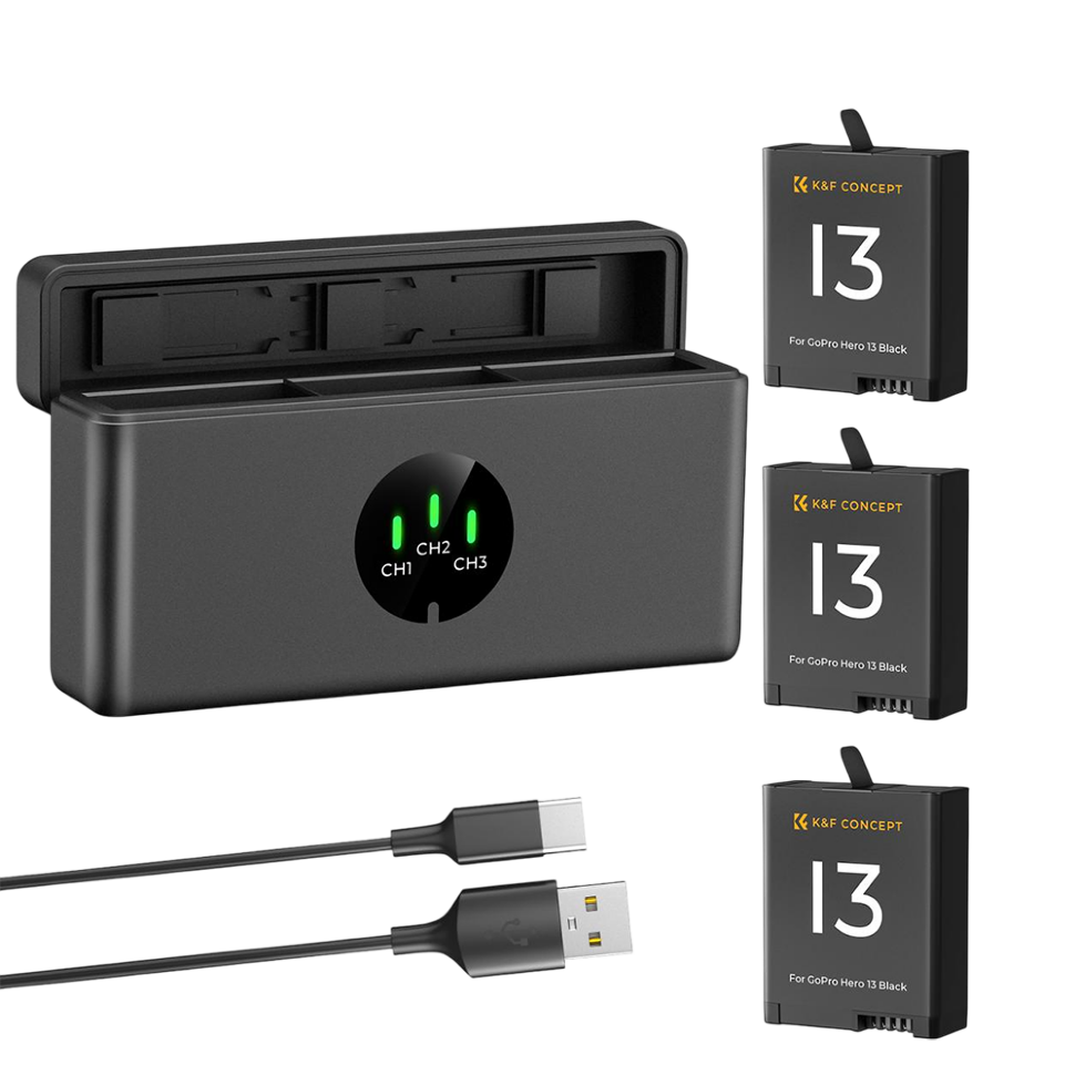 3 аккумулятора Enduro + зарядный кейс K&F Concept для GoPro Hero13
