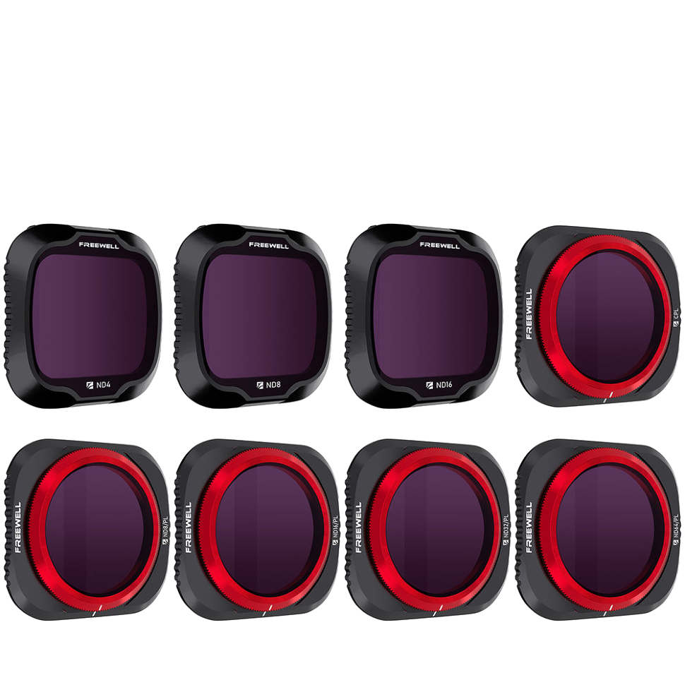 | Набор из восьми фильтров для DJI Mavic Air 2. С помощью нейтральных и нейтрально-поляризационных фильтров вы сможете снимать с необходимыми настройками диафрагмы, подбирая модель под актуальные погодные условия, а поляризационный позволит избавиться от нежелательных бликов и отражений |