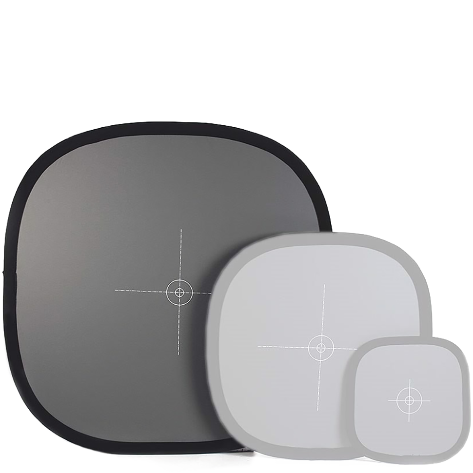 | | Двухсторонняя серая карта для настройки цветового баланса. Представляет собой складную серо-белую мишень из специальной ткани. Позволяет решить вопросы, связанные с настройкой экспозиции и коррекцией цвета в различных условиях освещенности |